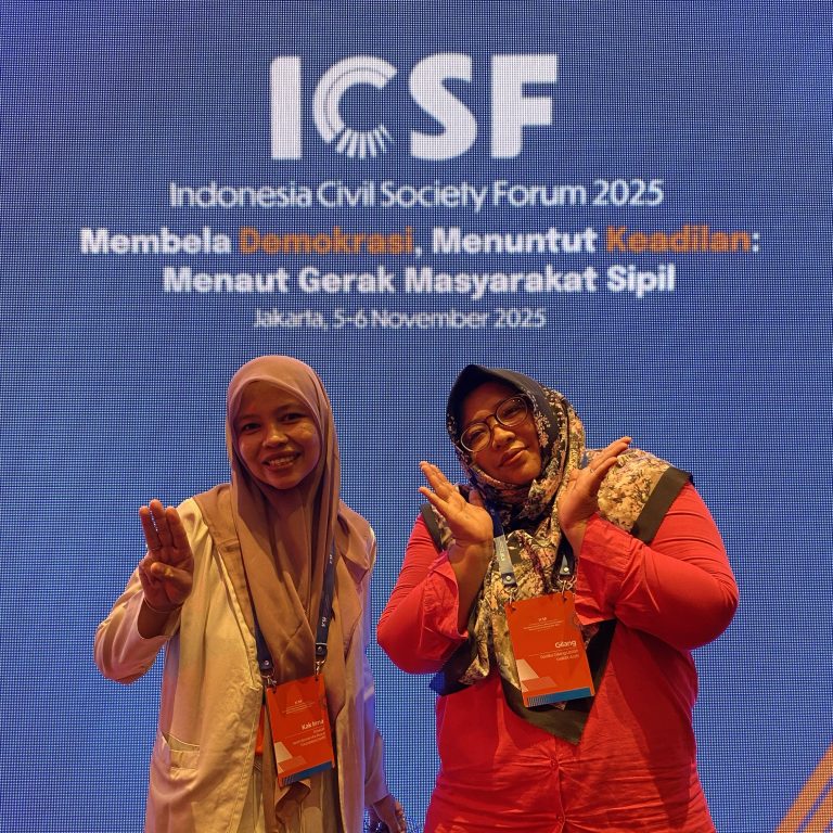 Jakarta, 7 November 2025 – Aceh Women for Peace Foundation (AWPF) kembali menunjukkan komitmennya dalam memperjuangkan hak-hak perempuan dan perdamaian inklusif dengan berpartisipasi dalam Indonesia Civil Society Forum (ICSF) 2025. Acara yang berlangsung selama dua hari, pada 5–6 November 2025 di Hotel Aryaduta, Jakarta Pusat, menghadirkan ratusan aktivis, pegiat organisasi masyarakat sipil, dan pembela hak asasi manusia dari berbagai wilayah Indonesia. Dengan tema utama “Membela Demokrasi, Menuntut Keadilan: Menaut Gerak Masyarakat Sipil,” ICSF 2025 menjadi wadah strategis bagi organisasi masyarakat sipil (OMS) untuk memperkuat solidaritas, kolaborasi lintas sektor, dan merumuskan strategi bersama menghadapi tantangan demokrasi dan ketidakadilan sosial di Indonesia. Forum ini diselenggarakan oleh Yappika bersama sejumlah organisasi masyarakat sipil berbasis di Jakarta. Direktur AWPF, yang hadir secara langsung dalam kegiatan tersebut, mengikuti berbagai sesi diskusi yang membahas isu-isu krusial seperti pembelaan ruang sipil (civic space), perlindungan hak-hak perempuan dan kelompok rentan, peran generasi muda dalam demokrasi, serta strategi penguatan gerakan di tingkat akar rumput. Dalam salah satu sesi, Direktur AWPF menegaskan pentingnya memperluas ruang aman bagi perempuan korban kekerasan di tengah situasi yang terus berubah. “ICSF merupakan ruang kritis untuk memastikan bahwa gerakan masyarakat sipil tetap kuat, bersolidaritas, dan mampu menjadi suara masyarakat yang terpinggirkan. Di tengah tantangan demokrasi yang kian kompleks, kita tidak boleh kehilangan arah perjuangan,” ujar Direktur AWPF. Selain menjadi ruang refleksi, ICSF 2025 juga melahirkan rekomendasi bersama untuk memperkuat keterlibatan masyarakat dalam proses demokrasi, mendesak perlindungan bagi para pegiat hak asasi manusia, serta memastikan kebijakan publik berpihak pada keadilan dan keberlanjutan. Forum ini menegaskan gerakan masyarakat sipil sebagai kekuatan utama dalam menjaga demokrasi dan keadilan sosial di Indonesia. Kegiatan ini diakhiri dengan seruan untuk terus memperluas jejaring, memperkuat narasi kolektif, dan membangun strategi advokasi yang inklusif dan berbasis solidaritas – terutama bagi kelompok perempuan, anak muda, dan minoritas yang paling sering terdampak ketidakadilan.