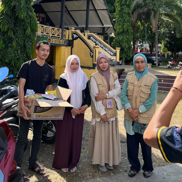 Banda Aceh, 3 Desember 2025 — Aceh Women’s Peace Foundation (AWPF) melaksanakan kegiatan penyaluran bantuan logistik kepada perempuan penyintas bencana alam yang berada di Anjungan Bener Meriah pada Selasa, 3 Desember 2025. Kegiatan ini merupakan bagian dari respons kemanusiaan AWPF terhadap bencana banjir yang melanda sejumlah wilayah Aceh pada akhir November 2025. Penyaluran bantuan ini ditujukan kepada keluarga penyintas banjir yang mengalami kehilangan sanak saudara serta rumah tempat tinggal akibat bencana. Dalam situasi darurat tersebut, para penyintas menghadapi keterbatasan akses komunikasi karena terputusnya jaringan internet dan padamnya listrik, sehingga tidak dapat menginformasikan keberadaan dan kondisi mereka kepada keluarga maupun pihak terkait. AWPF menyalurkan bantuan berupa kebutuhan pokok serta perlengkapan kesehatan dan kebersihan bagi perempuan dan keluarga penyintas bencana di lokasi pengungsian. Bantuan ini diharapkan dapat meringankan beban penyintas dalam memenuhi kebutuhan dasar, kesehatan, dan kebersihan di tengah kondisi krisis. Selain penyaluran bantuan di Anjungan Bener Meriah, AWPF juga menyalurkan bantuan logistik berupa makanan ringan kepada mahasiswa asal Aceh Tengah dan Bener Meriah yang berada di Banda Aceh. Pada saat kejadian bencana, para mahasiswa tersebut mengalami kesulitan mengakses dana untuk membeli kebutuhan logistik sehari-hari di Banda Aceh akibat terganggunya kondisi keluarga dan jaringan komunikasi di daerah asal. Penyaluran bantuan kepada mahasiswa ini merupakan bentuk solidaritas AWPF kepada penyintas bencana ekologis di Aceh, sekaligus upaya memastikan kelompok terdampak bencana, termasuk mahasiswa perantau, tetap mendapatkan dukungan kemanusiaan. Melalui kegiatan ini, AWPF menegaskan komitmennya untuk terus hadir memberikan dukungan kepada perempuan dan kelompok rentan serta komunitas terdampak bencana ekologis di Aceh, baik di wilayah terdampak langsung maupun di luar daerah bencana.